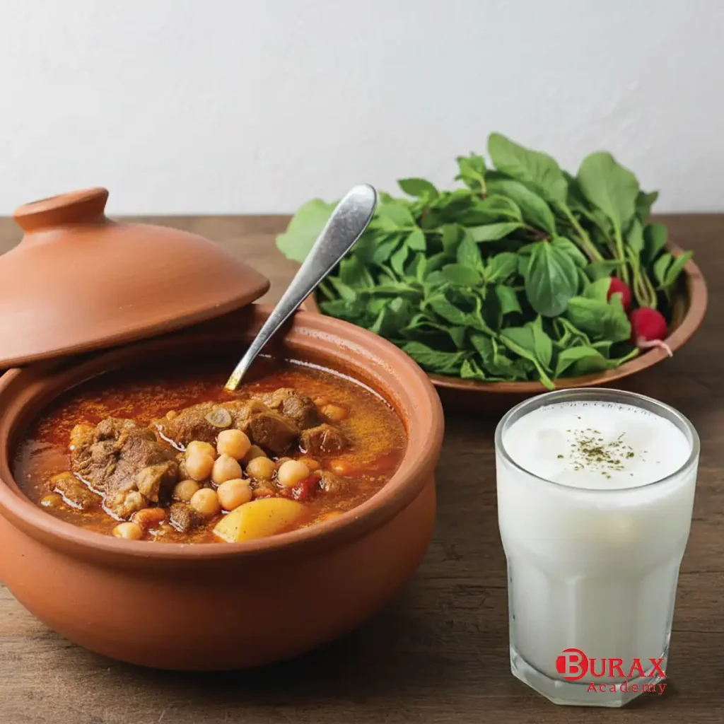 - ظرف مناسب: پختن آبگوشت در ظرف سنگی یا سفالی (دیزی) طعمی سنتی به آن میدهد که در قابلمههای فلزی تکرارپذیر نیست.