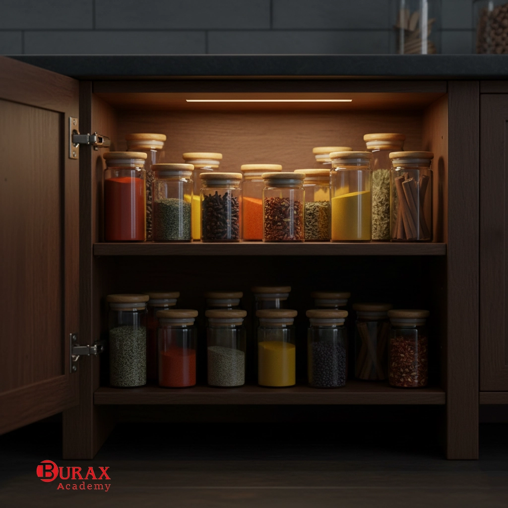 - نکته کلیدی: هرگز ظروف ادویه را در مجاورت مستقیم اجاق گاز، بالای فر یا کنار پنجرههای آفتابگیر قرار ندهید.